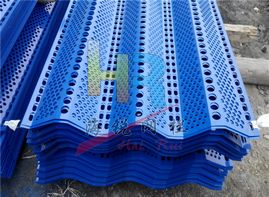 防風抑塵網是利用空氣動力學原理,按照實施現場環境風洞實驗結果加工成一定幾何形狀、開孔率和不同孔形組合擋風抑塵墻,使流通的空氣(強風)從外通過墻體時,在墻體內側形成上、下干擾的氣流以達到外側強風,內側弱風,外側小風,內側無風的效果,從而防止粉塵的飛揚。
