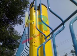 結構:桃型柱護欄網采用冷拔低碳鋼絲焊接成的隔離網,用連接附件與鋼管支柱固定。