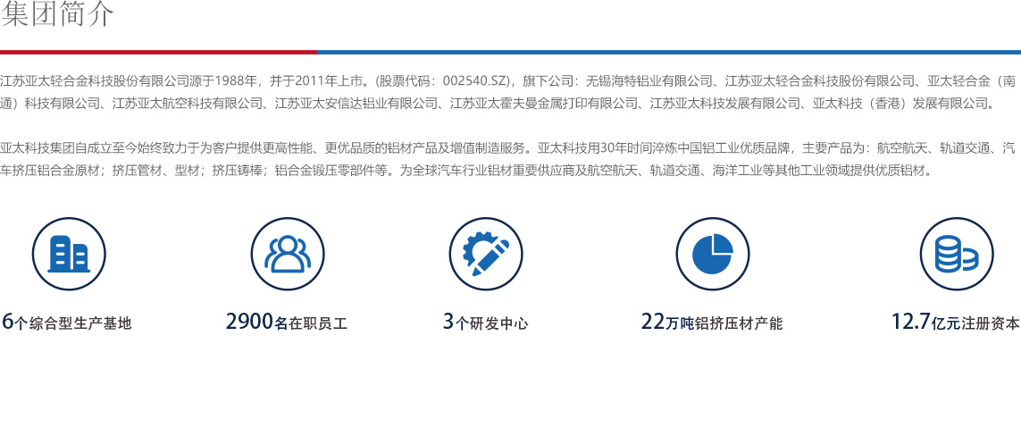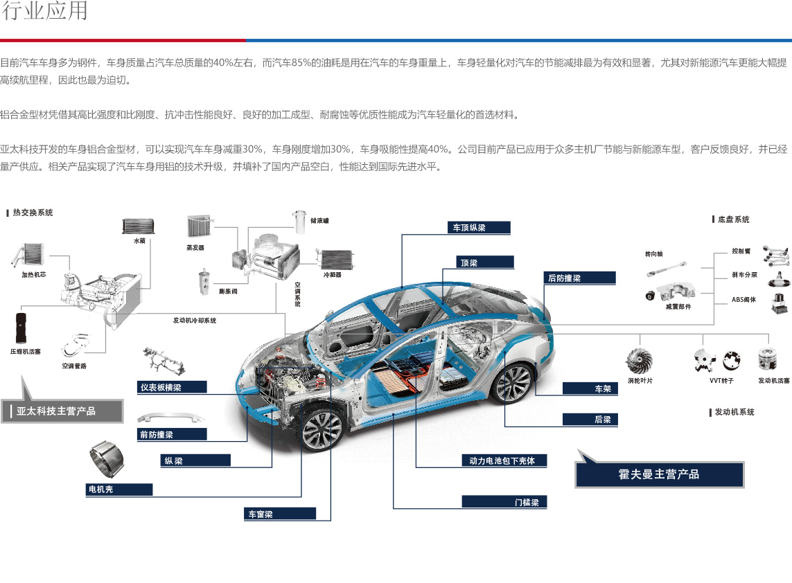 亞太科技始終致力于為客戶提供更高性能、更優(yōu)品質(zhì)的鋁材產(chǎn)品及增值制造服務(wù)。通過在材料、工藝、裝備、應(yīng)用方面不斷創(chuàng)新,在過程、品質(zhì)、交付方面持續(xù)改進(jìn),亞太科技用30年時(shí)間淬煉中國鋁工業(yè)優(yōu)質(zhì)品牌,成為全球汽車行業(yè)鋁材重要供應(yīng)商及航空航天、軌道交通、海洋工業(yè)等其他工業(yè)領(lǐng)域鋁材優(yōu)質(zhì)供應(yīng)商。
